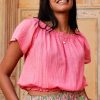 Our best-selling Carrie Blouse is the perfect style to see you through all seasons; the frill collar and cuffs make for gorgeous layering under knits. Made from 100% organic cotton dobby, Carrie has a button-through front, framed with lace and full length sleeves. Pretty pintucks at the yolk and cuffs add to the femininity of this v-neck, pretty blouse.