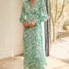 Aspiga Women’s Aurelia Organic Cotton Block Print Dress | Gardenia Pink/green | Pink & Green