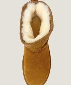 Aspiga Women’s Shoes Lucky Bear Mini Sheepskin Boot | Tan | Lotus Flower Pink & Green