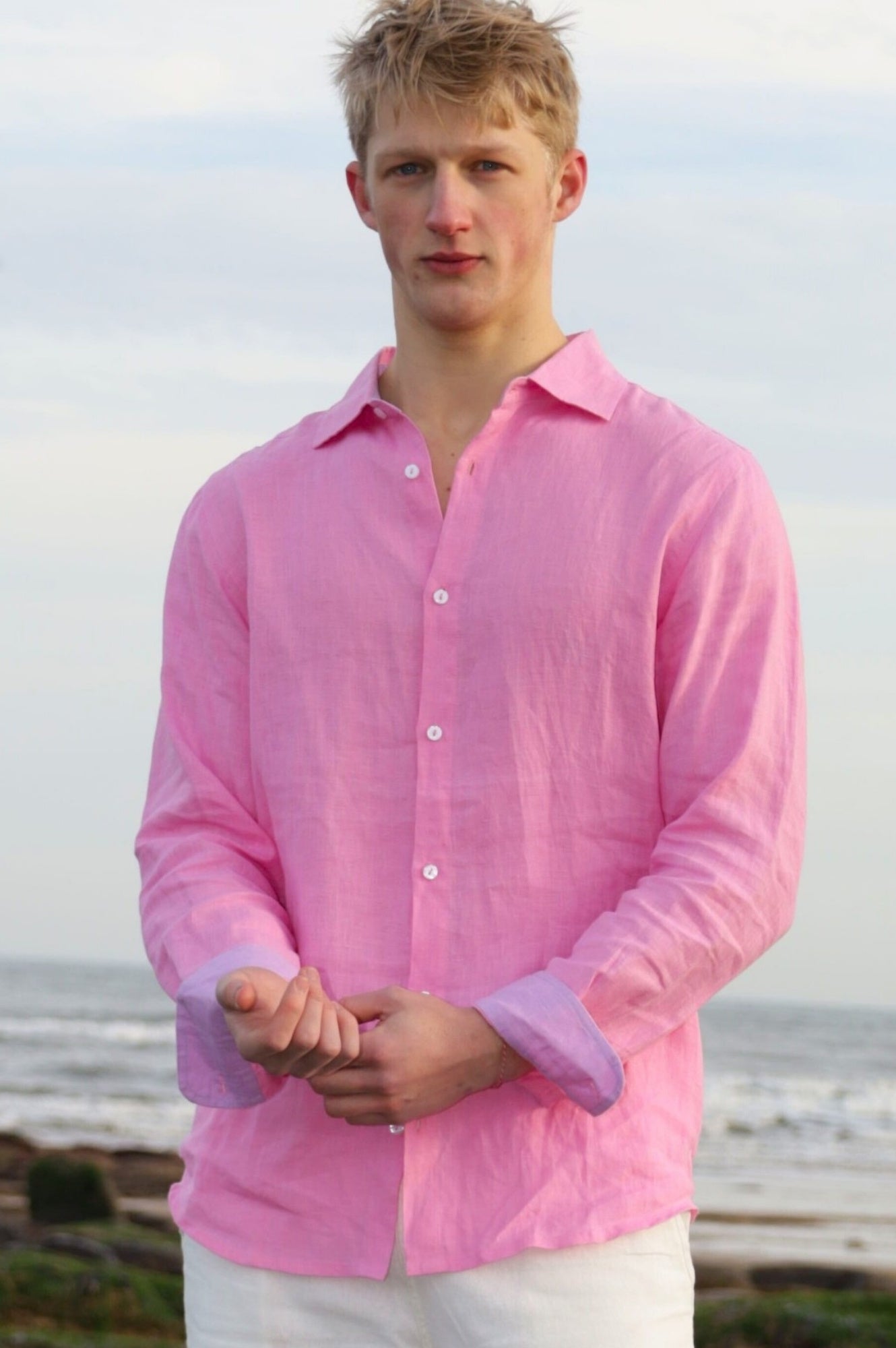 Our bestselling Men’s Shirt is back, now crafted from Premium European-certified Linen. Designed with a slim fit, it features long sleeves with contrasting color details inside the cuffs and is cut to a longer length for a modern look. The shirt is completed with a button-front fastening, point collar, and collar stand, offering a sharp and stylish finish.