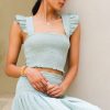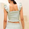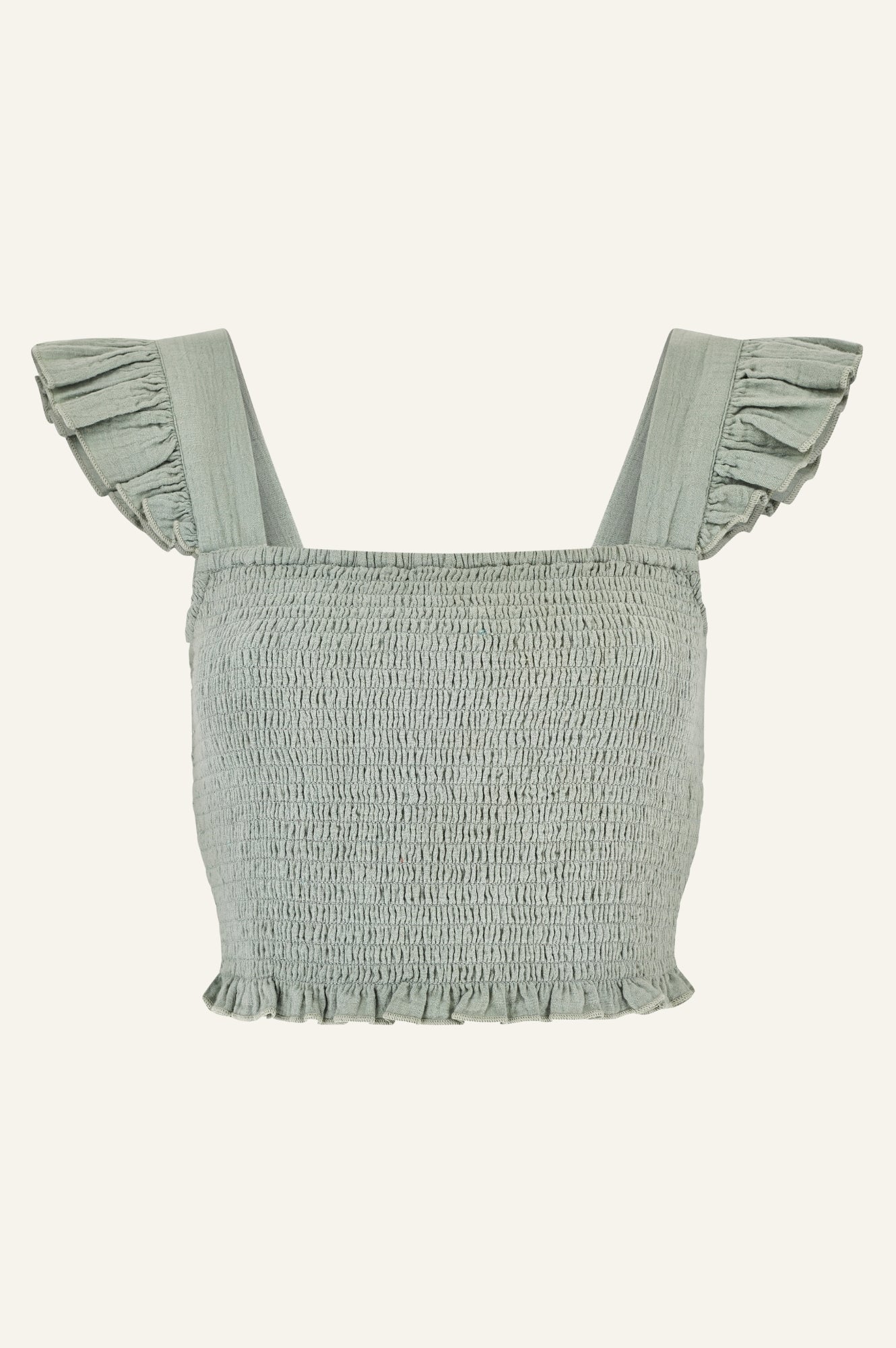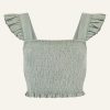 Crafted responsibly from a breathable 100% organic cotton cheesecloth, the Bryony Top is a staple garment for your summer wardrobe. The figure-hugging shirred bodice is finished with a flattering frill, creating a stunning sillouette. The Bryony top can be styled with our matching Brady Skirt for a coordinated look.