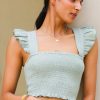 Crafted responsibly from a breathable 100% organic cotton cheesecloth, the Bryony Top is a staple garment for your summer wardrobe. The figure-hugging shirred bodice is finished with a flattering frill, creating a stunning sillouette. The Bryony top can be styled with our matching Brady Skirt for a coordinated look.