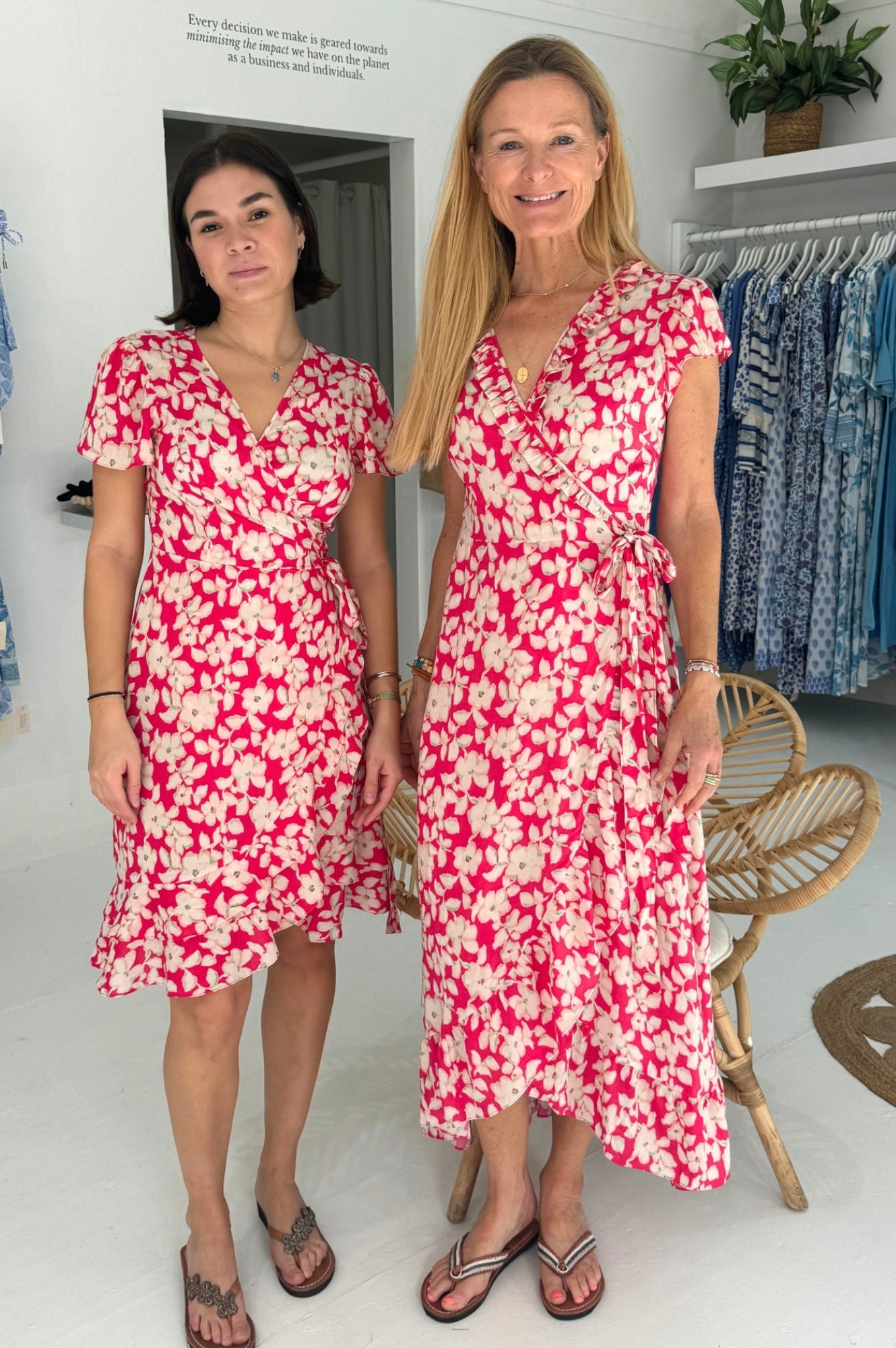 Our much loved Chelsea wrap dress returns for SS25 with a new print. Made from one of our core sustainable fabrics, soft EcoVero™ viscose has a beautiful drape. The dress features a slightly higher V neckline than in previous seasons and a smaller opening for the adjustable waist tie. This wrap dress style flatters all figures.