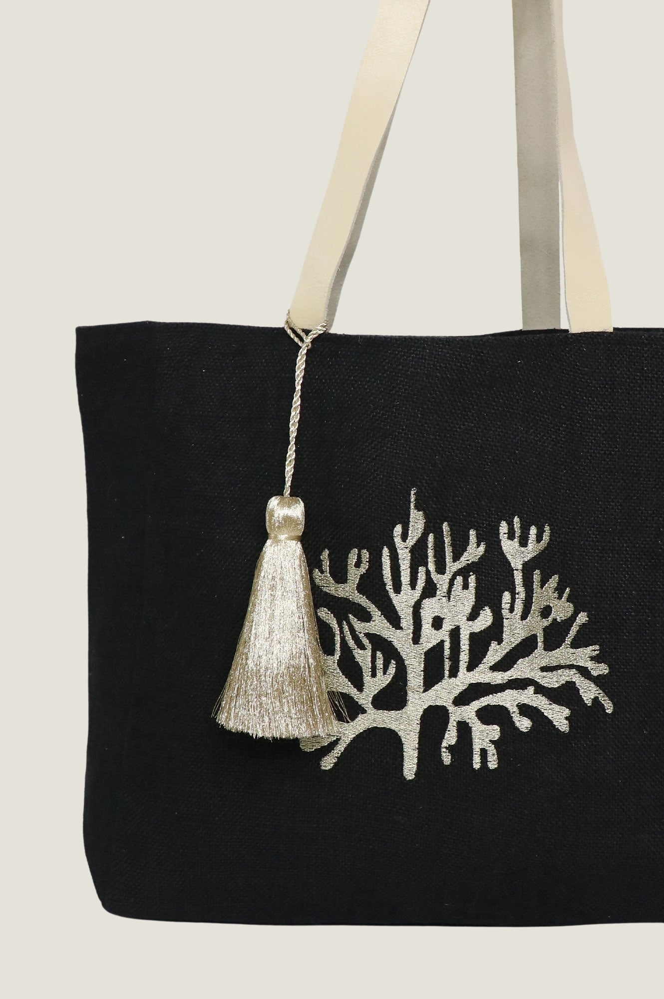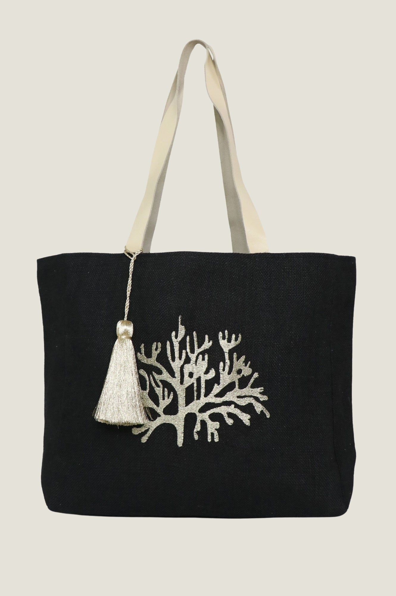Bringing back our classic Coral Beach Bag made from 100% jute. Featuring two soft leather shoulder straps, an internal pocket for organisation and a magnetic closure. Finished with an embroidered coral motif on the front.