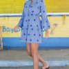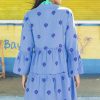 Introducing our Cristina Embroidered Kaftan made from soft 100% organic cotton. Featuring a deep v-neckline with mandarin collar, optional button closure and subtle raw edge detailing on cuffs, waist and tier. Finished with flute sleeves, allover floral embroidery and cut to a two-tiered loose swing hem.