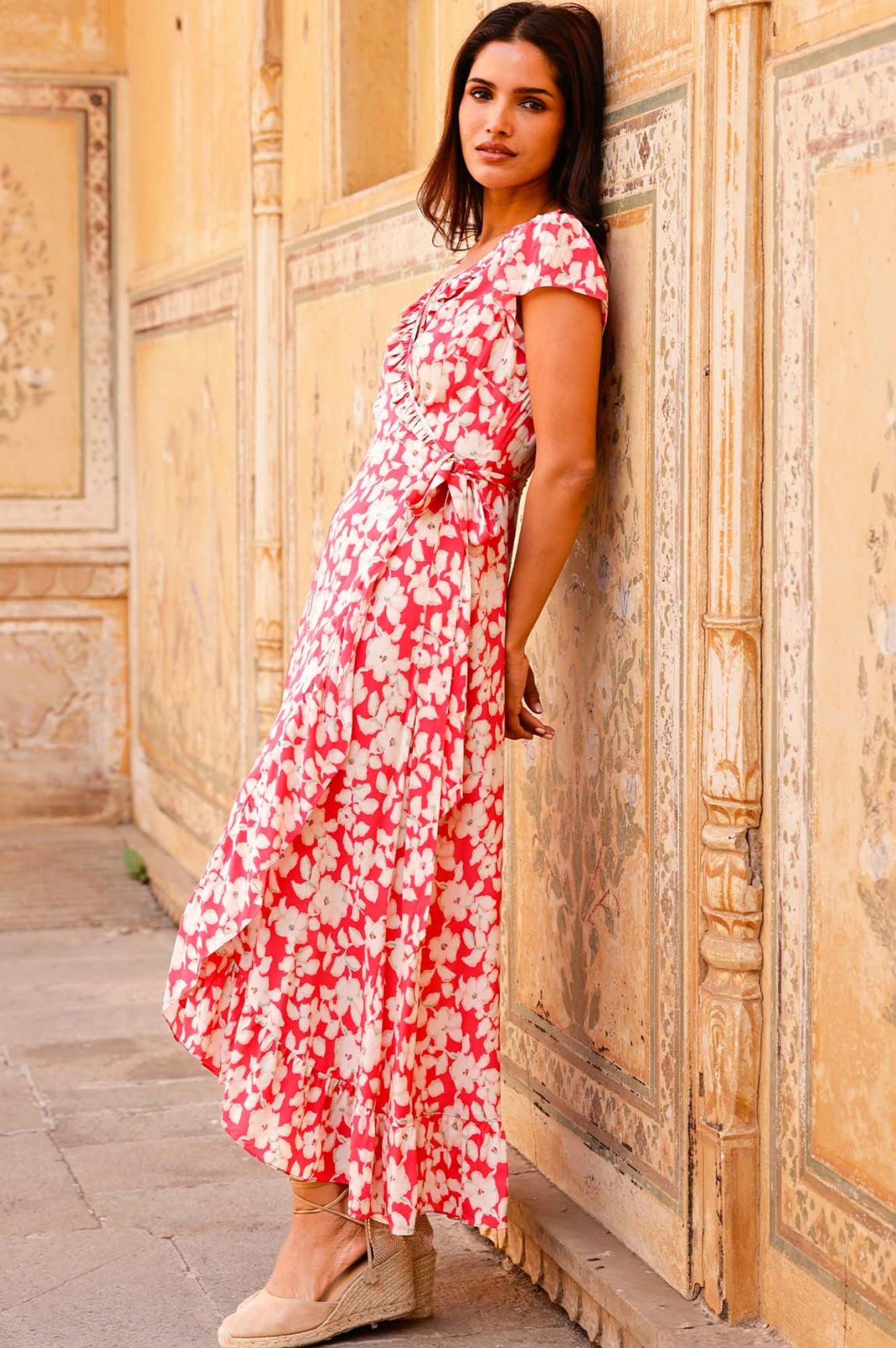 Aspiga Women’s Demi Ecovero™ Wrap Dress | Blossom Pink/cream | Pink & Cream