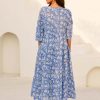 A long-time favourite, our Emma midi dress arrives in lightweight soft organic cotton in a new floral print. Unlined, Emma is easy to wear for beach days or pop on a slip and wear into town. Glass beading detail on the neck ties adds an extra sustainable touch and the sleeve has a very gentle flare.