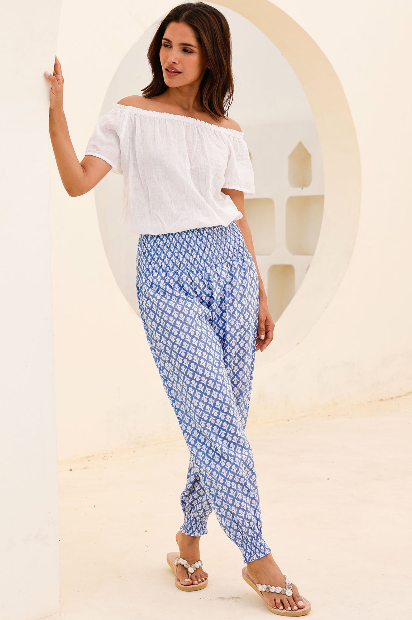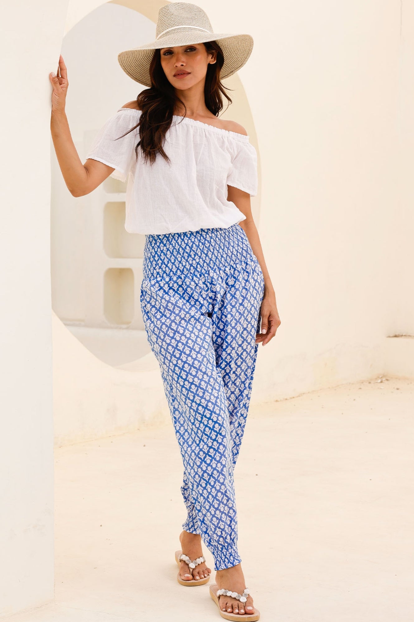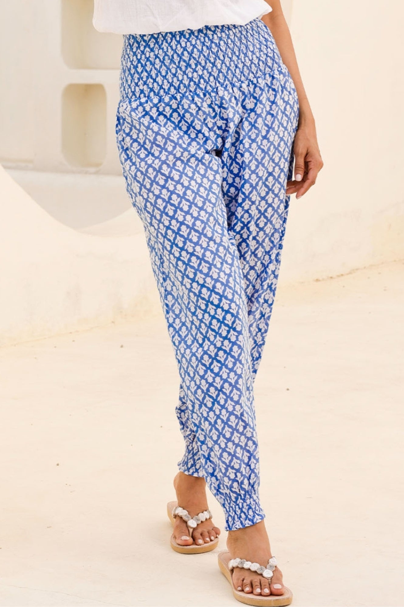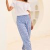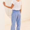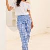 Aspiga Women’s Harem Organic Cotton Trousers | Flower Stamp Cornflower/white | Cornflower & White