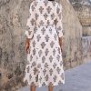 Aspiga Women’s Hayden Organic Cotton Block Print Dress | Antique Wildflower Cream/red/green | Cream & Red & Green