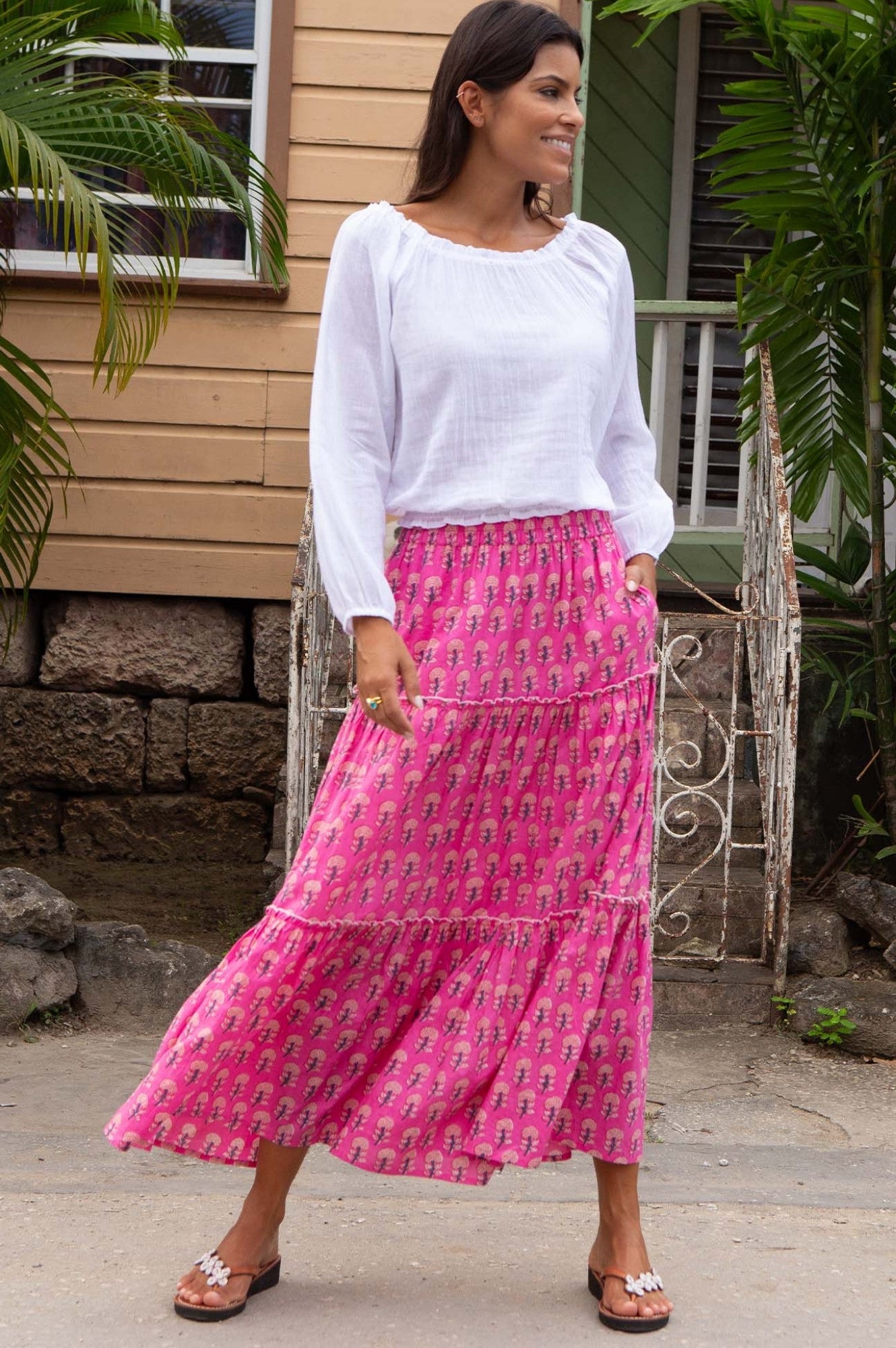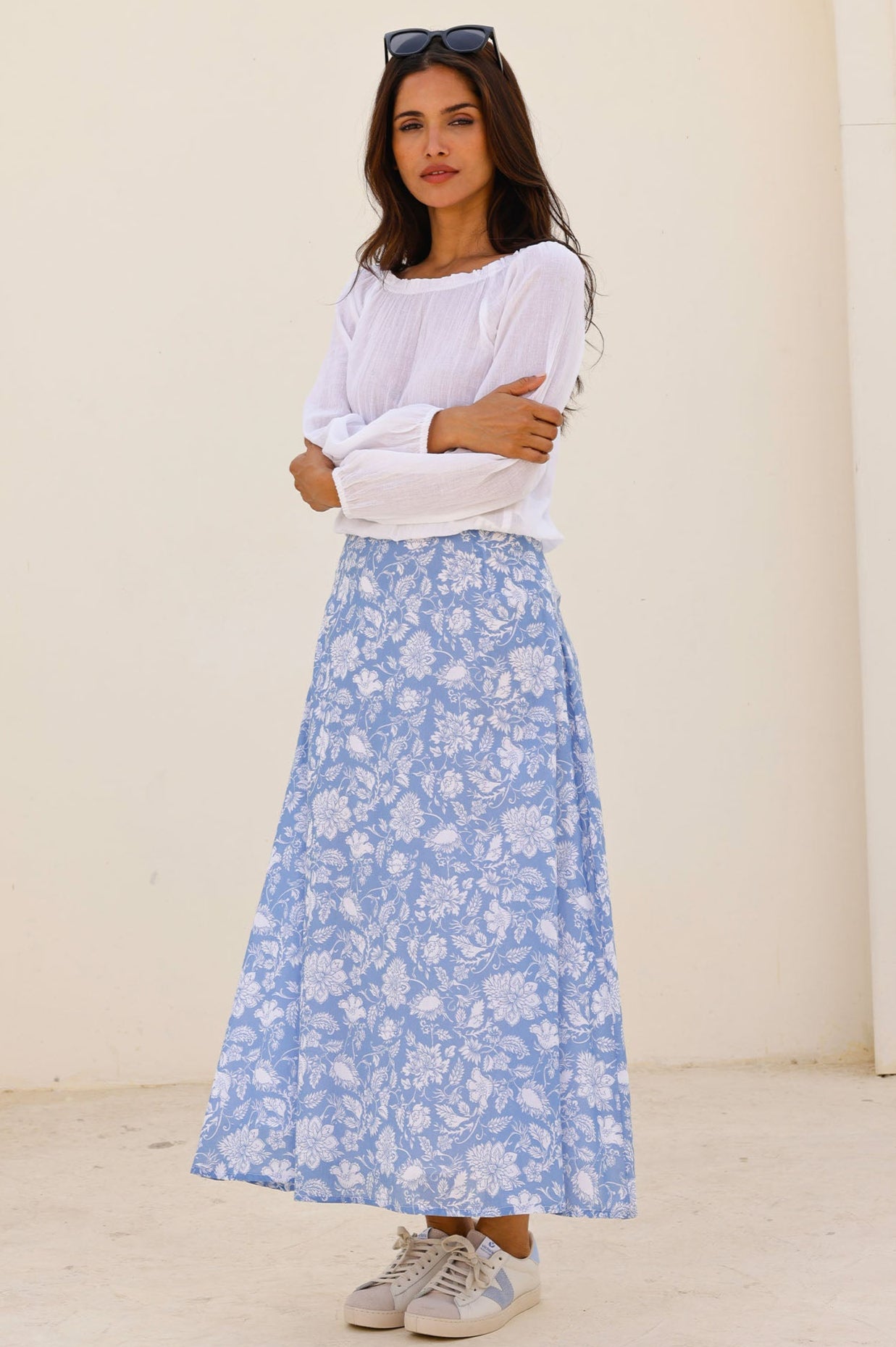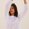 Aspiga Women’s Ilana Long Sleeve Frill Organic Cotton Gauze Top | White | White