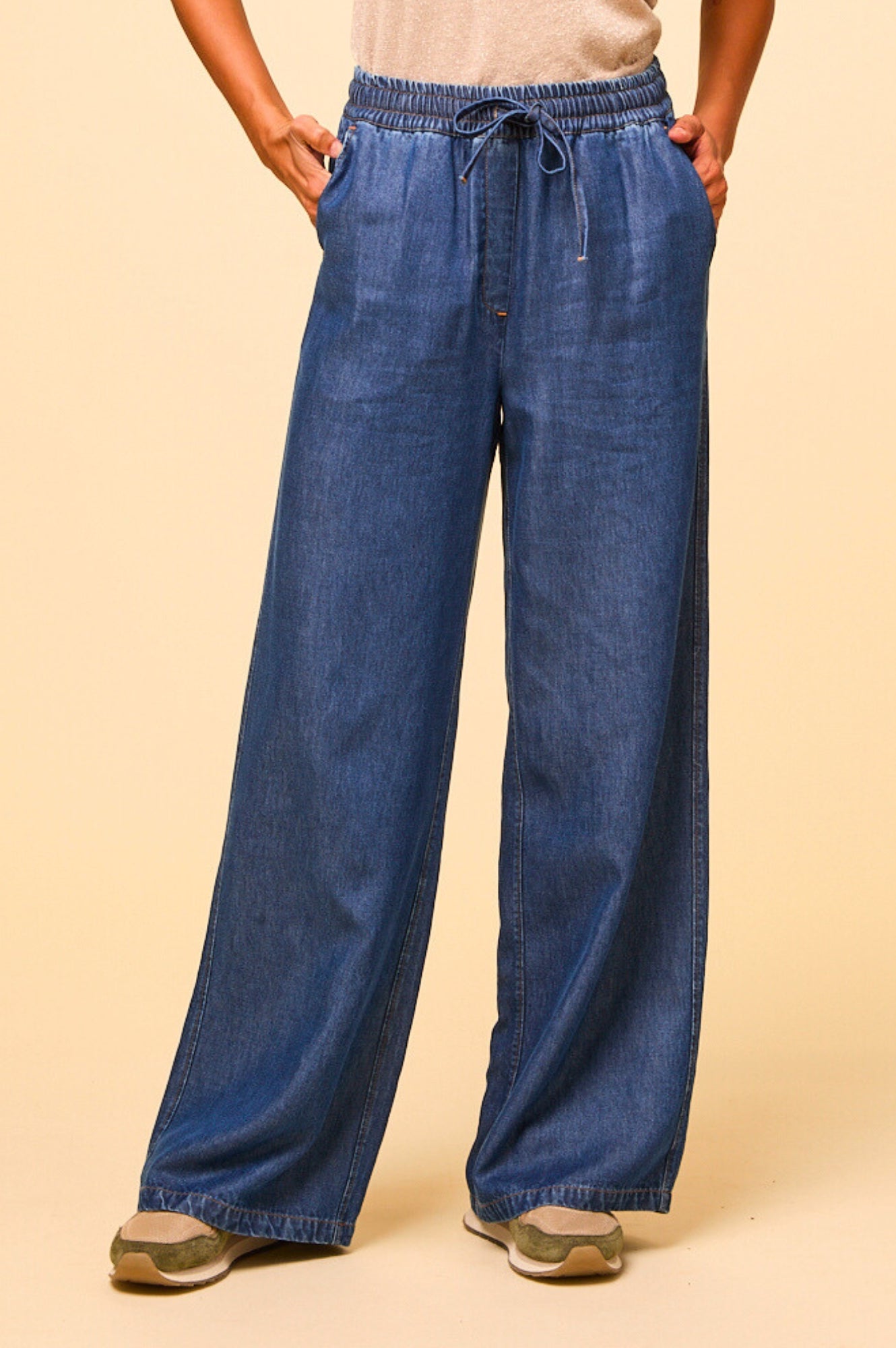 Made from 100% drapey denim Tencel TM; the Juliana is an elegant, wide-leg drawstring trouser. Pair with a blazer or a relaxed knit for elegant daywear that is as comfortable as it is stylish.