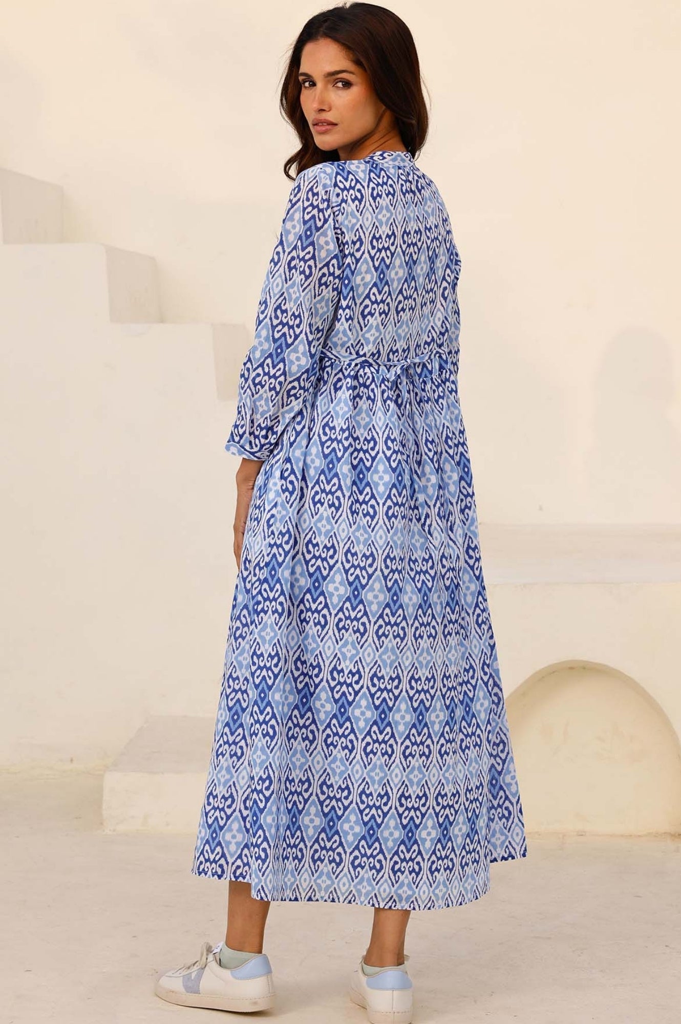 Introducing the Mara Dress, a timeless and versatile dress crafted from 100% organic cotton, blending comfort with sustainability. This elegant design features a flattering V-notch neckline and bracelet-length sleeves, offering a perfect balance of style and ease. The adjustable waist tie ensures a customizable fit, while the midi length adds a touch of sophistication. Whether worn as a chic kaftan over a bikini or as a stylish day dress, the Mara Dress is a perfect addition to your wardrobe, effortlessly transitioning from beach to brunch.