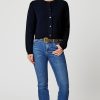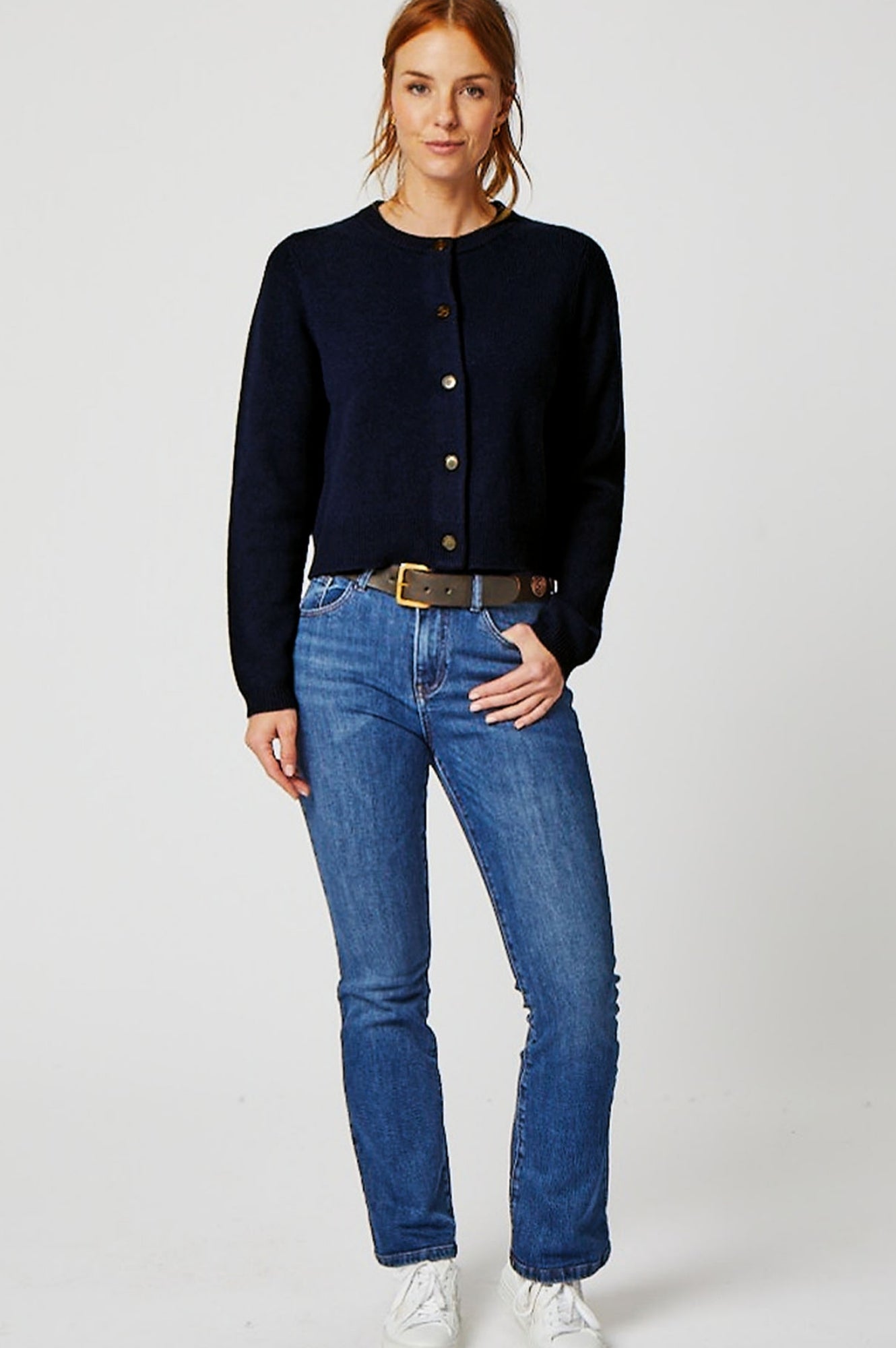 The finest 100% merino wool yarn gives this cardigan a wonderfully soft cashmere feel. With a boxy fit, Brittany is slightly cropped with a button through front, ribbed cuffs, hem and crew neck. Half price knitwear comb with every purchase – discount applied at checkout when you add one to your basket.