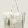 Aspiga Women’s Palm Tree Jute Beach Bag | Navy/silver | Navy & White