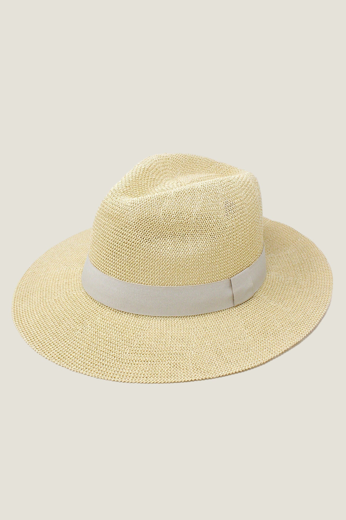 A timeless classic woven straw hat, by UK brand Somerville, with a flat brim and adorned with a taupe ribbon. Made from paper raffia, our hats are one size with an adjustable inner tie. With a choice of brightly coloured ribbons, they complete your summer look.