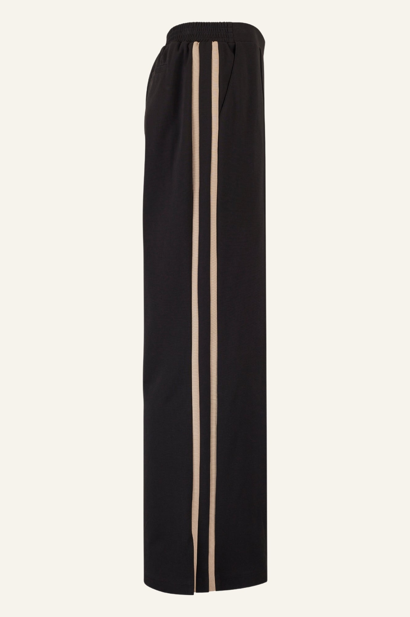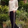 Bringing back our Ponte trouser now in a new colourway. This smart casual staple is crafted from a responsibly sourced cotton blend with stretch. A flat front and elasticated back waistband offer a flattering silhouette, perfect for a French tuck or layering with knitwear. Details include centre front pintucks, a sporty side stripe and hem splits.