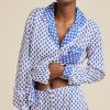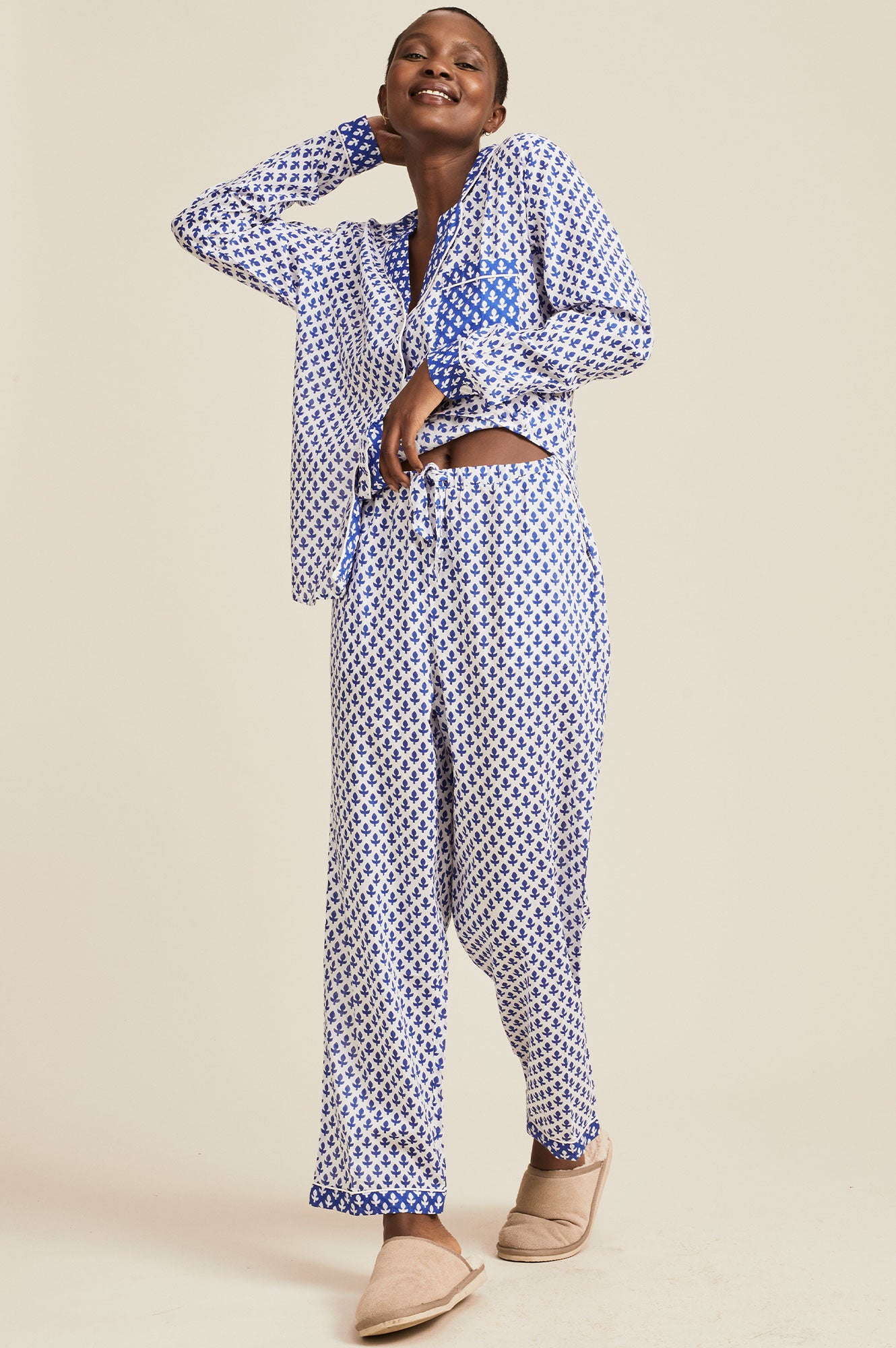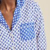 Introducing our lightweight and breathable Pyjama Set is made from soft organic cotton, in a classic button-down design with piping detail. Featuring a contrasting print on the collar, front pocket and cuffs. Paired with the full-length matching bottoms with an elasticated, drawstring waistband and concealed side pockets.