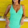 Crafted from recycled nylon, our swimwear is responsibly sourced to minimize waste that would otherwise end up in landfills. Make sure to bring along the V-Neck Ruched Swimsuit for your next vacation. This style boasts a plunging v-neck, padded soft molded cups, and adjustable straps, all made from double-layered fabric for a luxurious finish. The set-in side seams, lightweight control panel, and ruching offer a flattering fit for all body types.