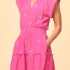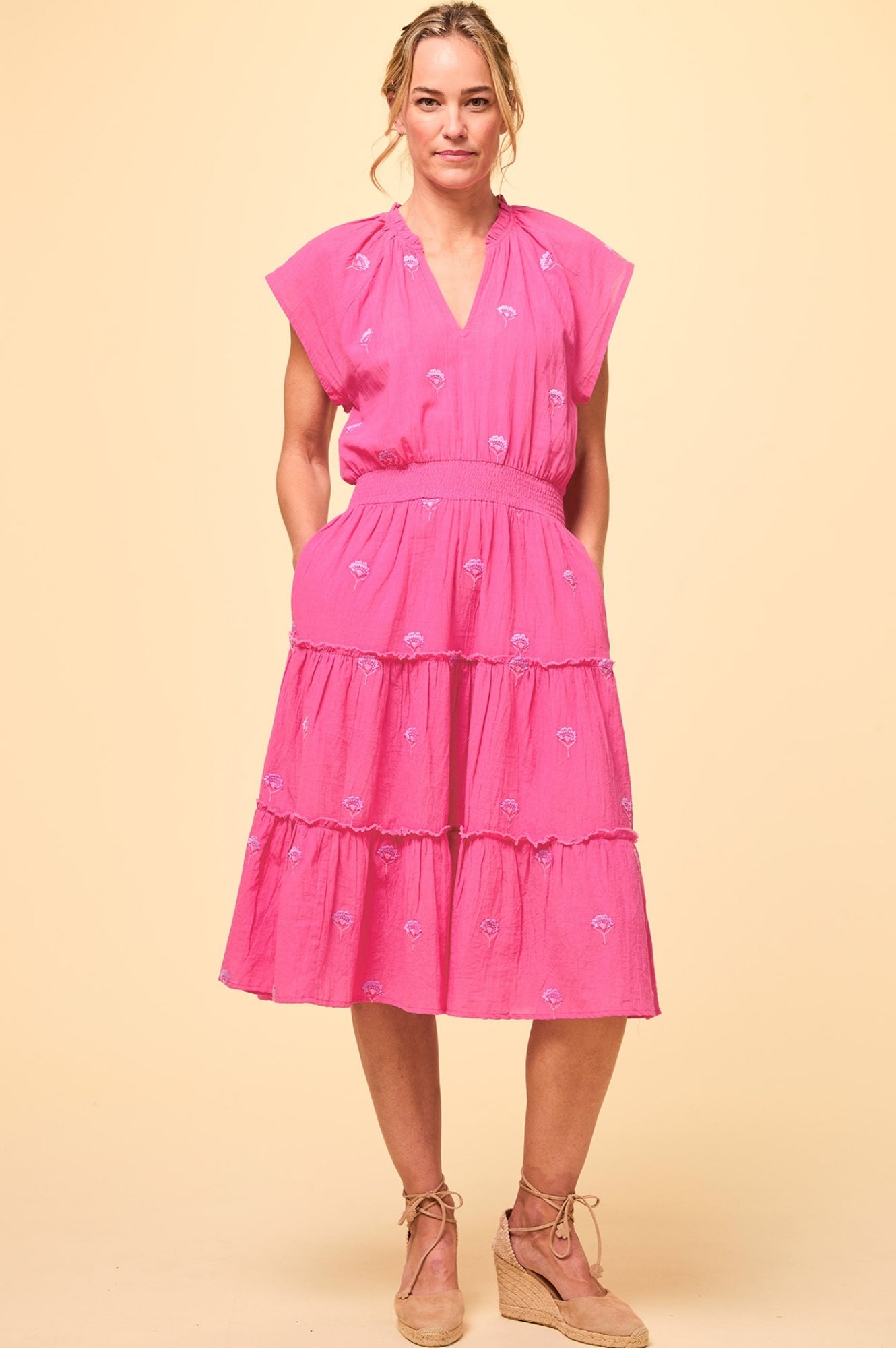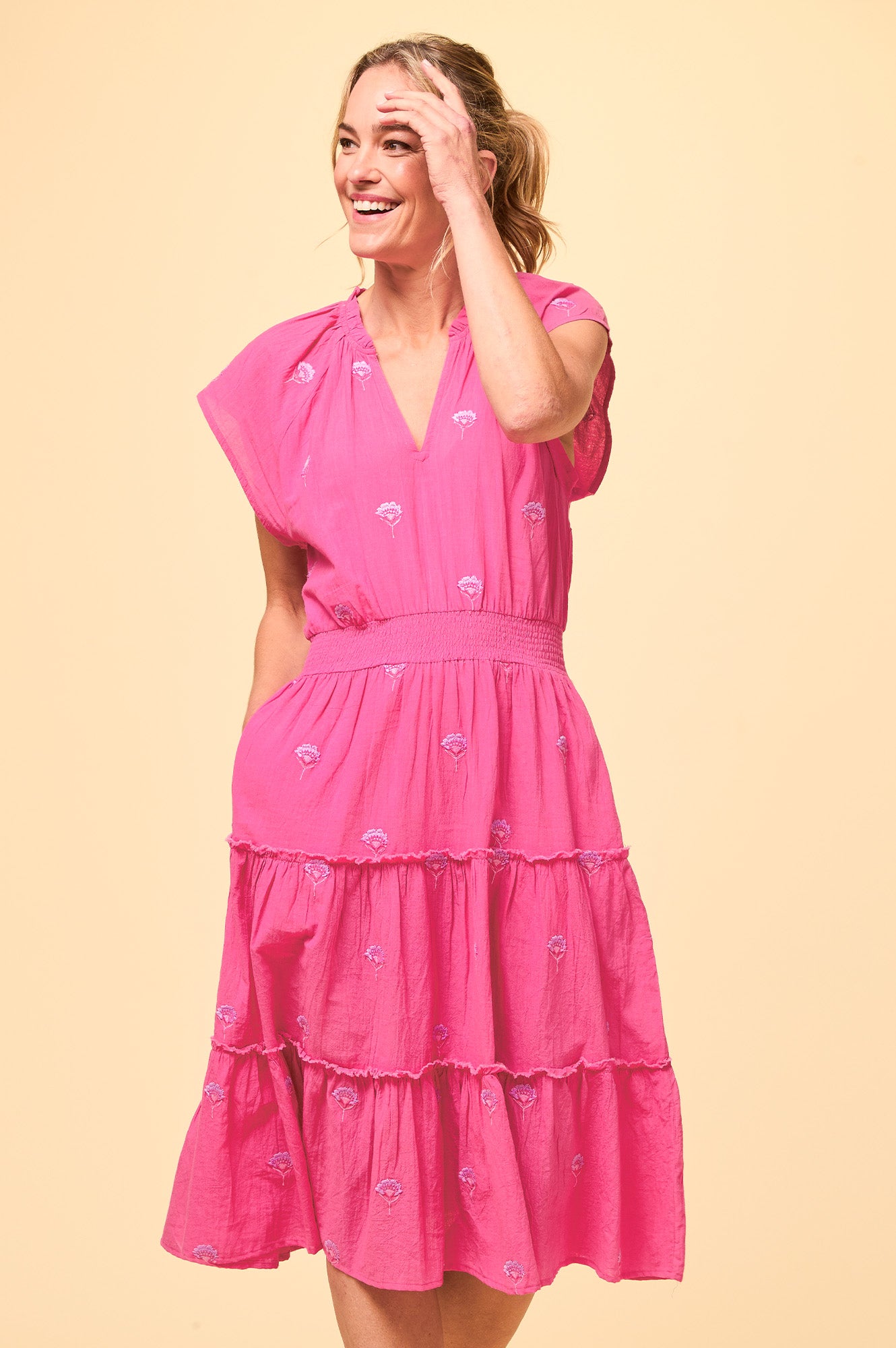 Aspiga Women’s Riley Embroidered Organic Cotton Dress | Stawberry Pink/lilac | Pink & Lilac
