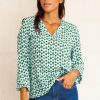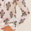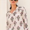 Our Rosie blouse is made from soft organic cotton, block-printed by hand in Jaipur. Rosie features a drawstring neck with ties and delicate ladder lace detailing. The blouse fits slim through the body and finishes at a length perfect to pair with jeans or a skirt. To find out more about the Art of Block Printing, click here.