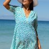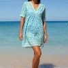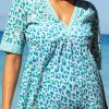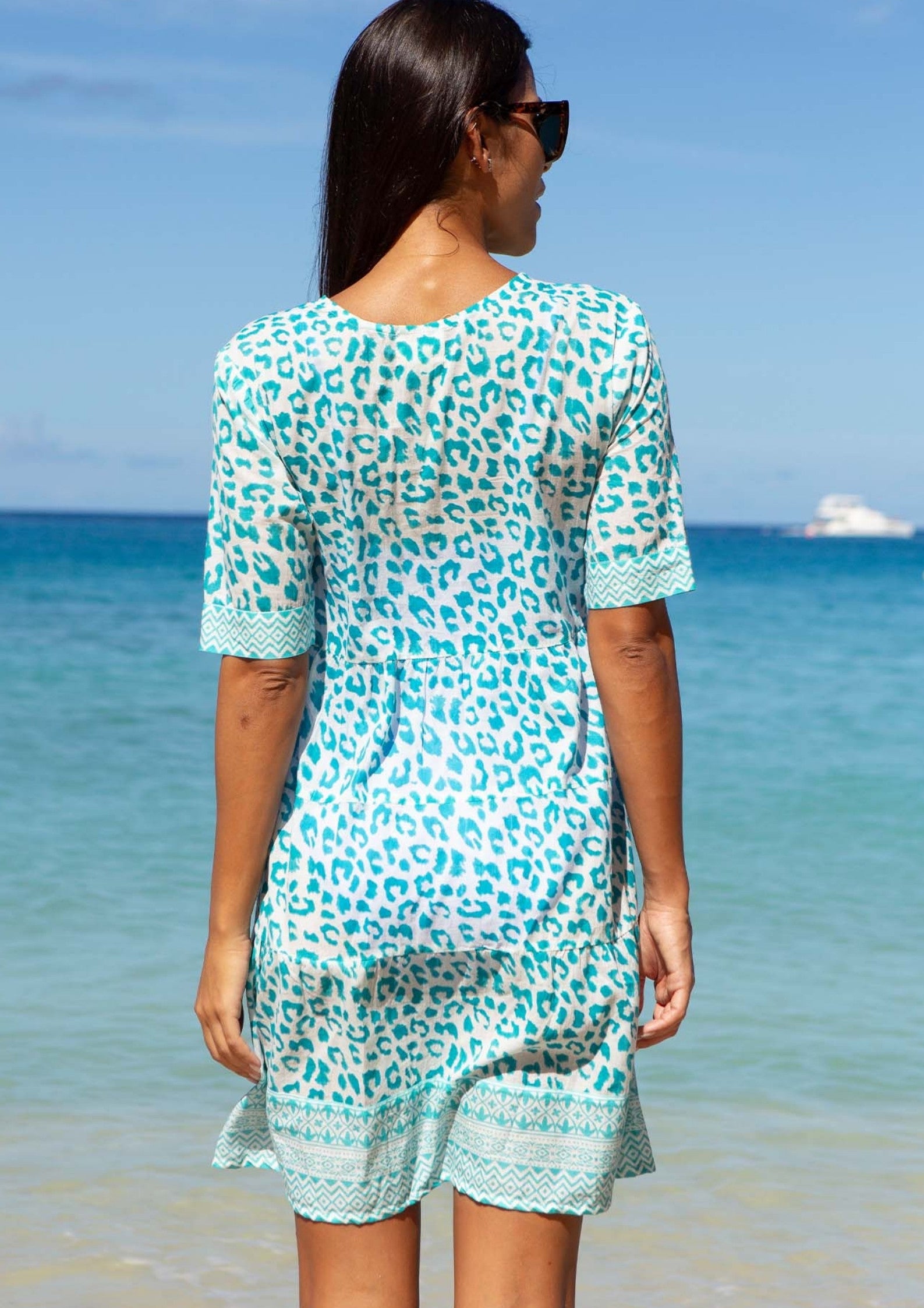 Aspiga Women’s Santorini Cotton Kaftan | Soft Cheetah White/turquoise | White & Gold