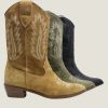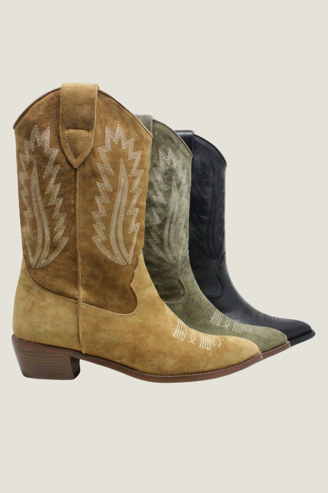 Our Camilla Boots by Spanish brand Alpe are back featuring a leather upper with cow-boy inspired embroidery, on a block wooden heel and rounded toe. Finished with a non-slip sole and side tabs for easy pull-on style.