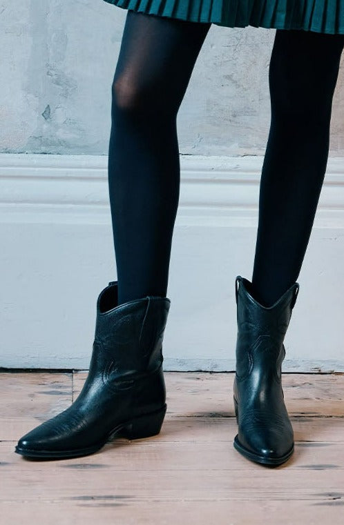 Our Camilla Short Boots by Spanish brand Alpe are back featuring in leather with cow-boy inspired embroidery, on a block wooden heel and rounded toe. Finished with a non-slip sole and side tabs for easy pull-on style.