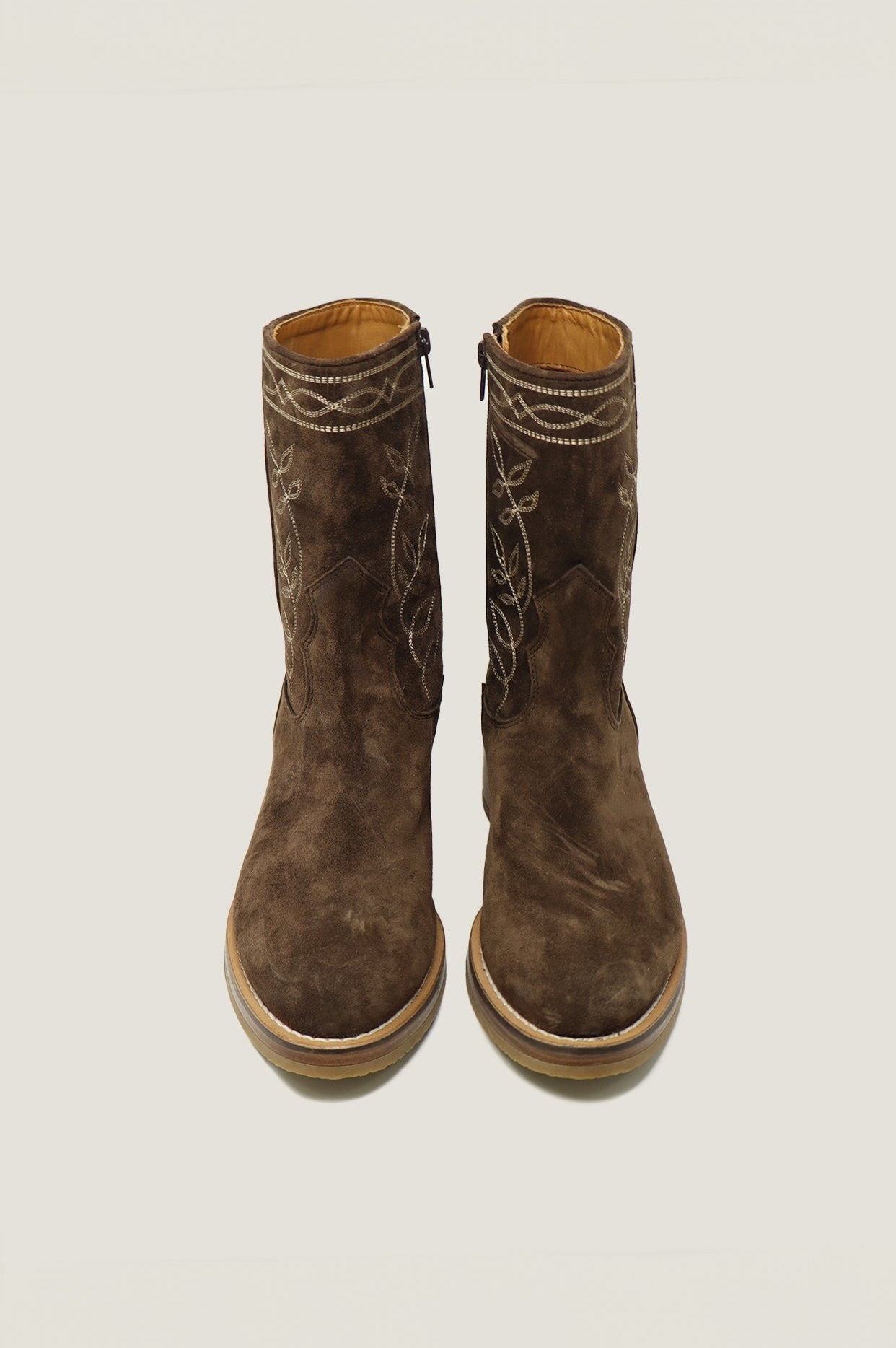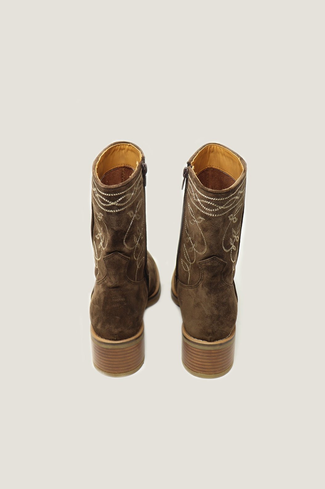 Embrace the western trend this season with the Ella Boots by Spanish brand Alpe. Featuring a suede outer-body with cow-boy inspired embroidery, on a block wooden heel and rounded toe. Finished with a golden zip closure and a non-slip sole.