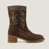 Embrace the western trend this season with the Ella Boots by Spanish brand Alpe. Featuring a suede outer-body with cow-boy inspired embroidery, on a block wooden heel and rounded toe. Finished with a golden zip closure and a non-slip sole.