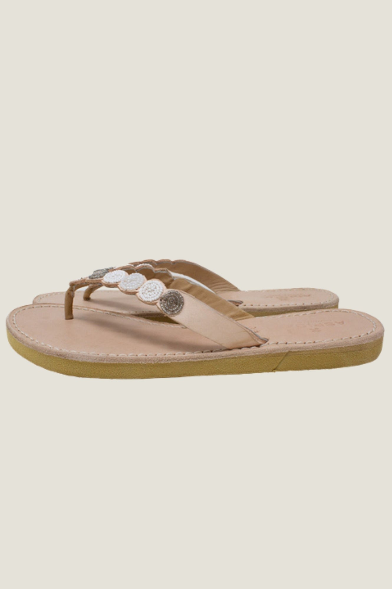 A gorgeous pair of sandals hand-made in Kenya, embellished with sustainable glass beads in a beautiful design. Each pair is lovingly crafted with a leather upper on a soft padded sole.