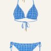 Introducing our triangle string bikini now in a new print this season. Made from recycled nylon. This is a classic shape made from double-layered fabric for a premium finish, paired with matching mid-rise bikini bottoms with adjustable ties at each side.